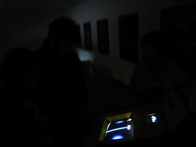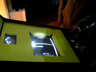 the main piece is a self-made wooden structure where all the physical action of the game occurs, the game area seen on the arcade main monitor through a video camera. This structure also hosts all of the electronics behind it's working method.