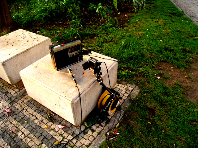 two musicians, detached from each other, but connected by the same conducting-audio-stream, which is generated real time by "Solitude or the eternal search of something to look for " - a radio installation by andré goncalves